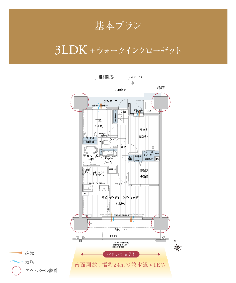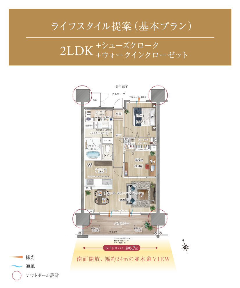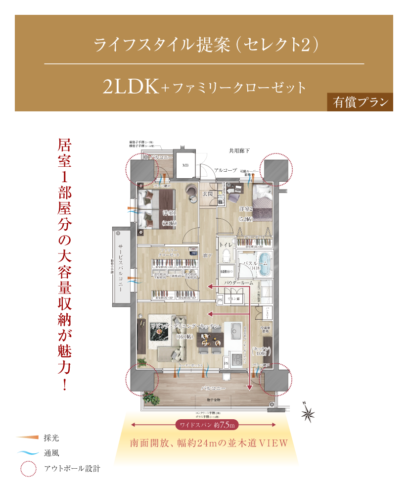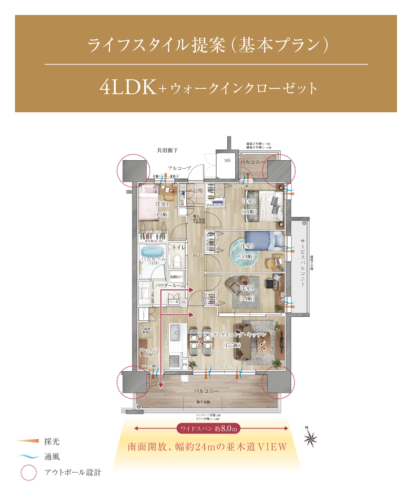 全邸南向きの間取りは、2LDK~4LDKの基本タイプに加え、