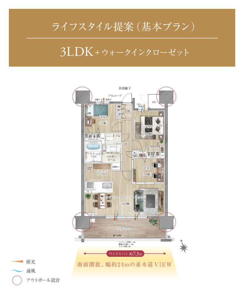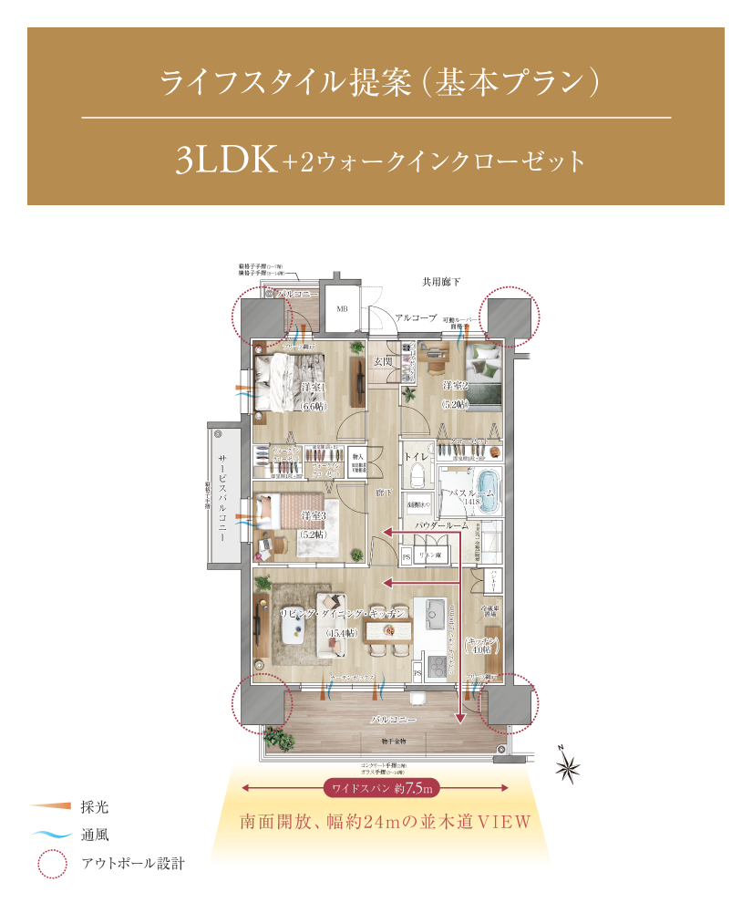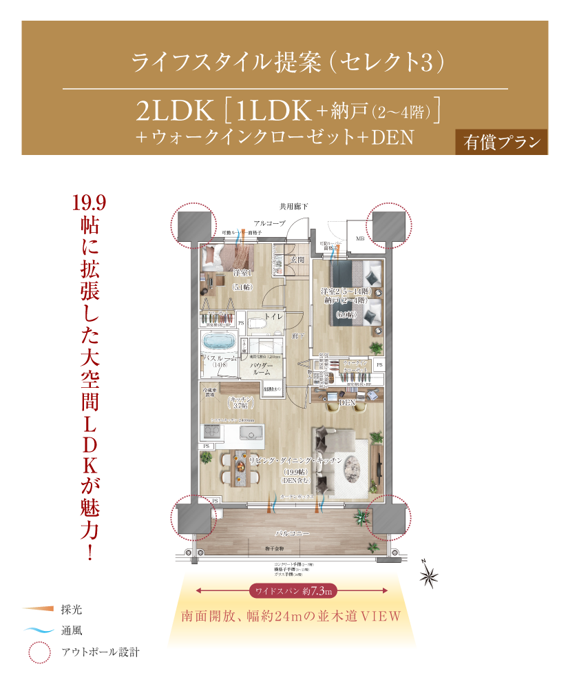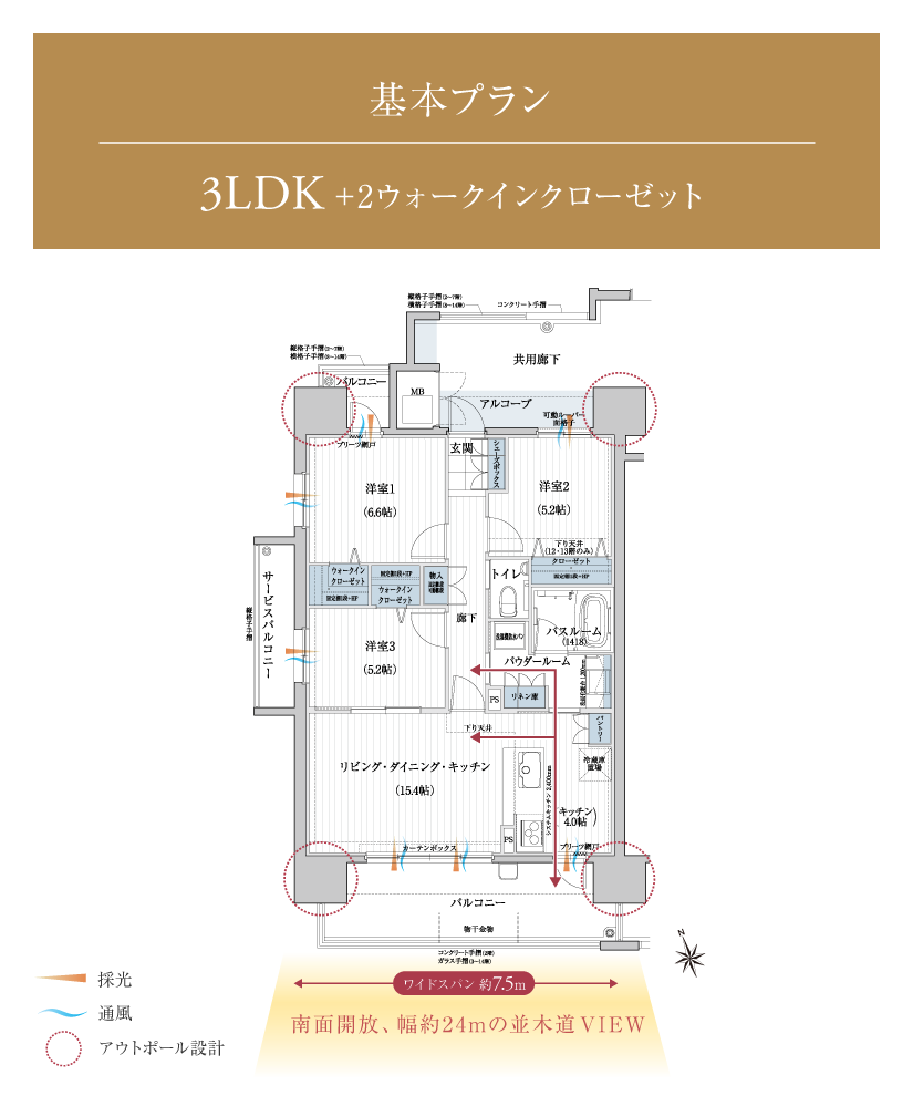 全邸南向きの間取りは、2LDK~4LDKの基本タイプに加え、